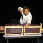 Dramaturgie et mise en jeu : Jean-Philippe Ibos / Propositions scénographiques, affiche : Michel Herreria / Lumières, constructions : Cédric Queau / Costumes : Isabelle Gruand / Avec : Hubert Chaperon et Jean-Philippe Ibos.